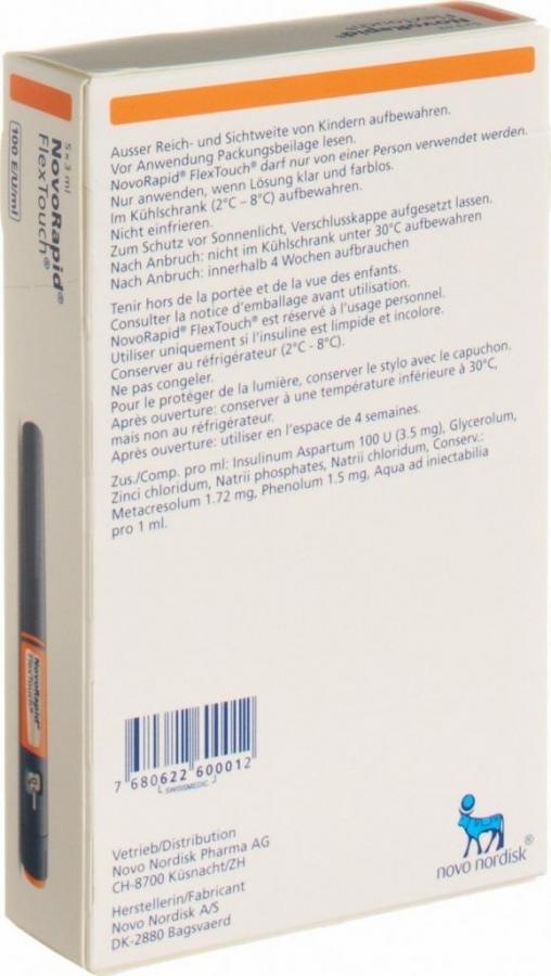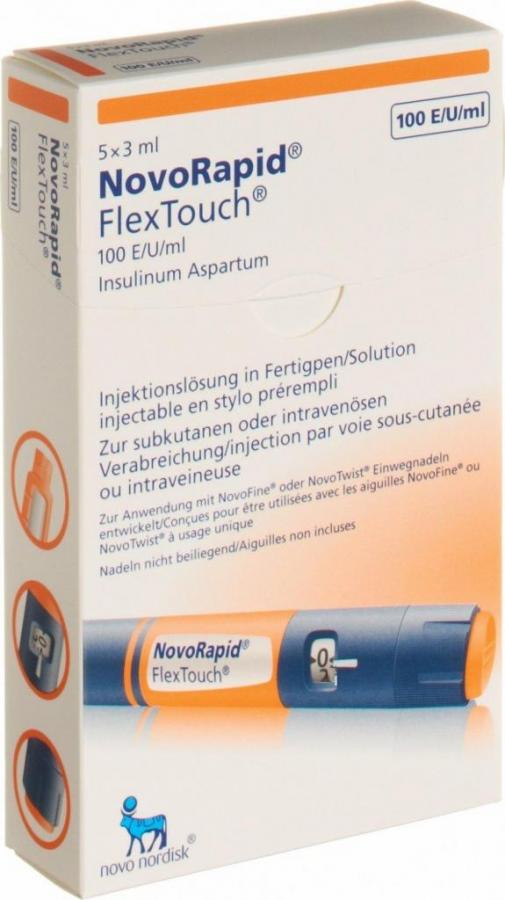 Инсулин Новорапид Флекстуш 5 ручек шприцов заполненных по 3 мл